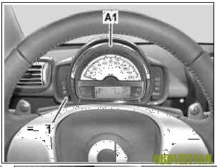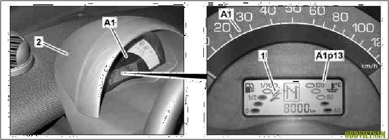 - Nhấn nút (1) trên đồng hồ táp lô (A1)