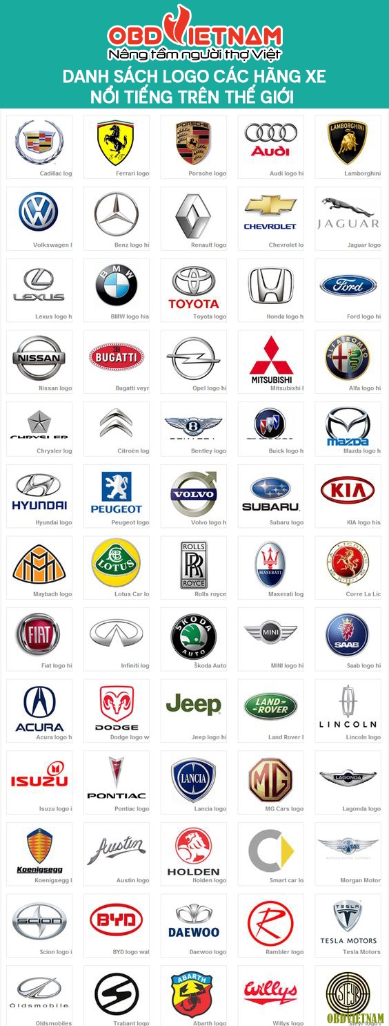 Để giúp mọi người hiểu hơn về các hãng xe trên thế giới. Nay OBD Việt Nam gửi đến các bạn danh sách logo các hãng xe nổi tiếng trên thế giới để các bạn tham khảo.