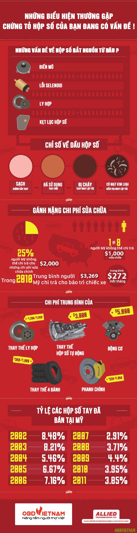 Hộp số nằm trong hệ thống truyền lực,cùng với động cơ truyền momen ra các bánh xe để xe có thể chạy. Đây được coi là bộ phận quan trọng thứ 2 trên ô tô sau động cơ với kết cấu phức tạp. Hãy cùng OBD Việt Nam khám phá những lỗi,ban bệnh thường gặp cùng với một số chỉ số vui về hộp sô tren ô tô nhé !