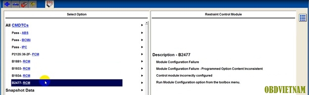 Lưu ý: Trước khi thay hộp túi khí, ta tiến hành đọc lỗi và khắc phục hết tất cả những lỗi liên quan đến túi khí ngoài trừ lỗi B2477 – Module Configuration Failure