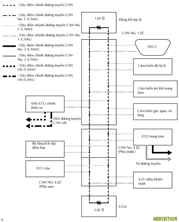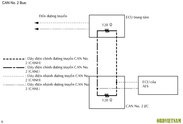 - Đường truyền HS-CAN là đường truyền tốc độ cao được sử dụng để liên lạc giữa các hệ thống truyền lực, gầm và một số hệ thống điện thân xe Đường truyền HS-CAN được dùng để gọi "Đường truyền CAN No.1" và "Đường truyền CAN No.2". Nó hoạt động ở tốc độ khoảng 500 kbps. Các điện trở cực cho đường truyền CAN No.1 được đặt ở trong ECU trung tâm và CAN No.2 J/C. Điện trở của đường truyền CAN No.2 không thể đo được từ giắc DLC3.