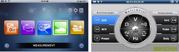 Với gói tùy chọn có thêm thiết bị VMI, kỹ thuật viên có thể sử dụng G-scan2 để tiến hành đo điện áp, dòng của các cảm biến trang bị trên xe, kiểm tra các cơ cấu chấp hành, mô phỏng các tín hiệu dưới dạng đồ thị xung một cách trực quan. Đo áp suất buồng đốt được thực hiện bằng option có cảm biến đo áp suất trên máy.
